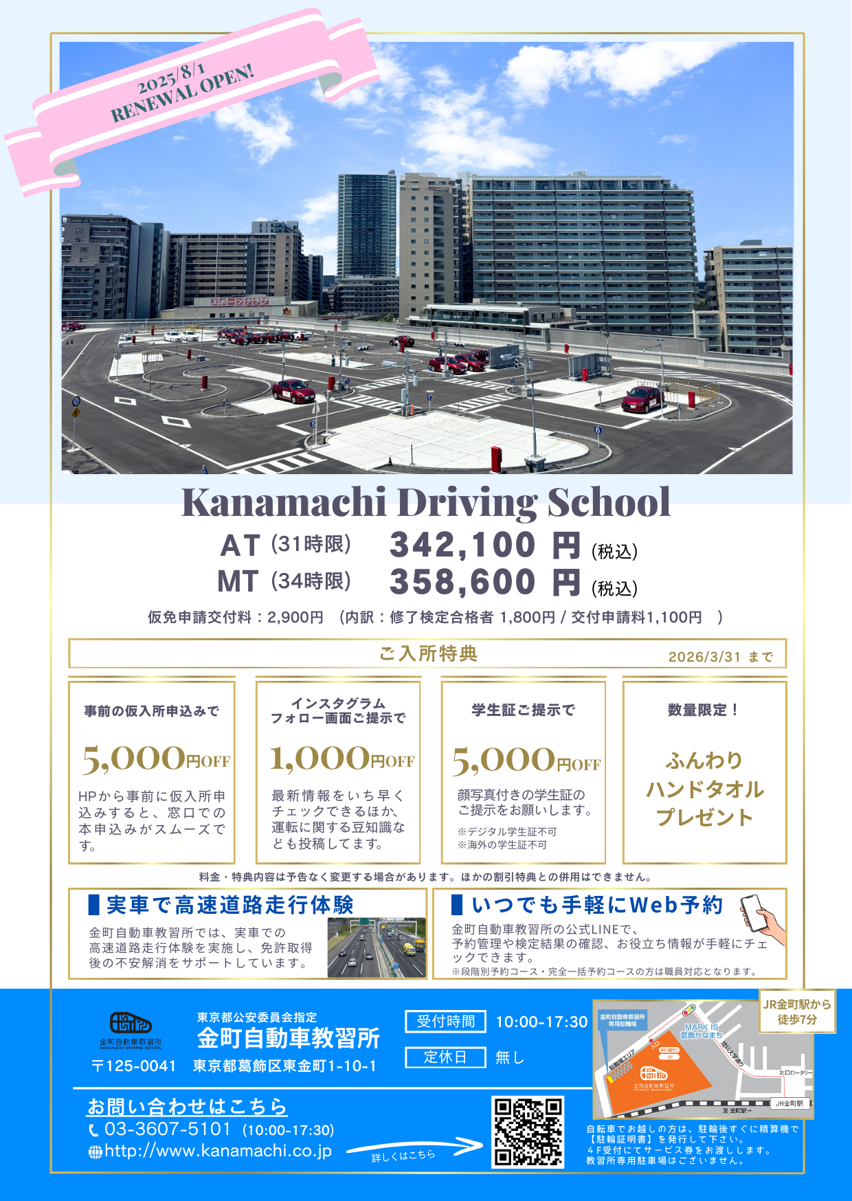 ※高速教習はシミュレーターで実施し、特別項目で「都市高速の運転」を実車にて行います。